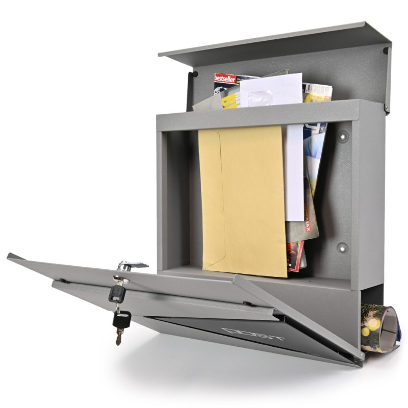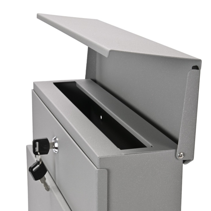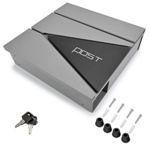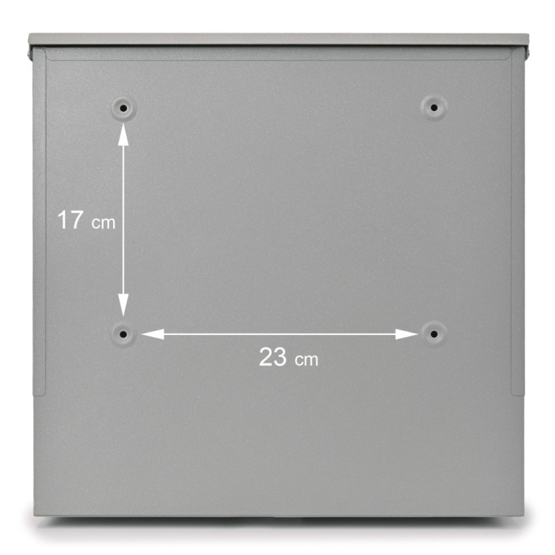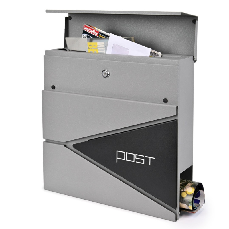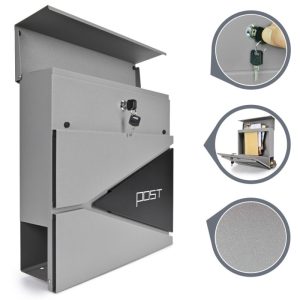 Poštová schránka, ktorá bude ozdobou Vášho domu. Kvalita materiálu a odolnosť voči poveternostným podmienkam. Nový dizajn, farebná kombinácia striebornej a čiernej farby. Vysoká odolnosť proti dažďu a chránený zámok schránky, pripravené montážne otvory. Dolná časť určená pre noviny a letáky. Horný kryt schránky veľmi dobre chráni korešpondenciu aj zámok pred vlhkosťou a dažďom. Sada obsahuje montážne skrutky. Zadná strana schránky má v zadnej časti pripravené montážne otvory pre rýchlu a jednoduchú montáž.