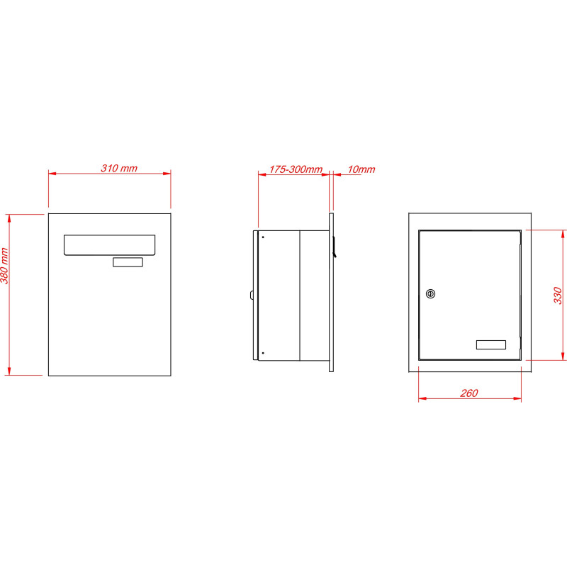 • Rozmery prednej časti schránky : ( Š x V x H ): 310 x 380 x 10 mm